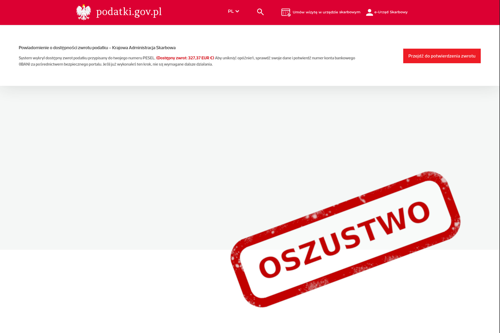 Pamiętaj: Instytucje rządowe mają adresy kończące się na .gov.pl, nie.gov-pl.com, .gov.pl.uk, itp.