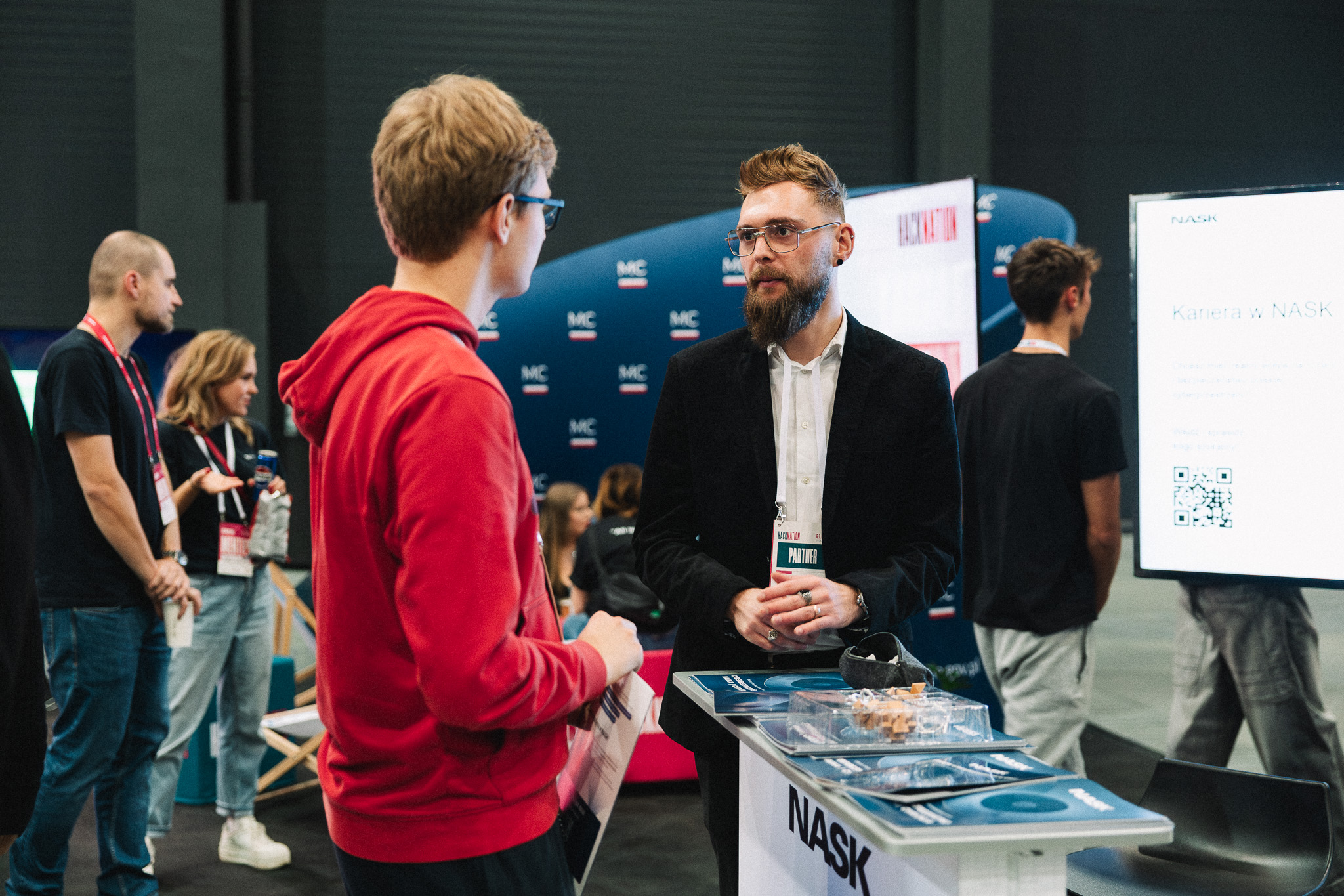 Oktawian Góral, ekspert NASK, który podkreślał: „Stanowisko NASK cieszyło się naprawdę dużym zainteresowaniem. Zdarzało się, że ustawiały się kolejki, żeby porozmawiać z naszymi ekspertami i mentorami”.