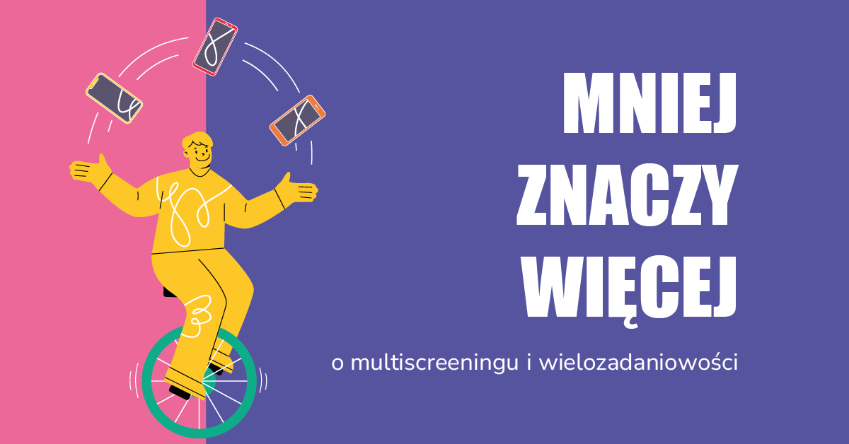 Czytając poradnik „Mniej znaczy więcej – o multiscreeningu i wielozadaniowości” Anny Borkowskiej, przygotowany w ramach projektu Ogólnopolskiej Sieci Edukacyjnej (OSE), dowiecie się, jaka jest cena wielozadaniowości, a także poznacie odpowiedź na jedno z ważniejszych pytań: czy jesteśmy skazani na multitasking.