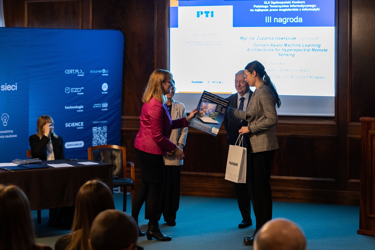 Cyberbezpieczeństwo aplikacji zdecentralizowanych, wykrywanie złośliwego oprogramowania oraz uczenie maszynowe w analizie danych hiperspektralnych – to zagadnienia prac, które zwyciężyły w tegorocznym konkursie PTI. Ufundowane przez NASK nagrody wręczono 30 stycznia we Wrocławiu.